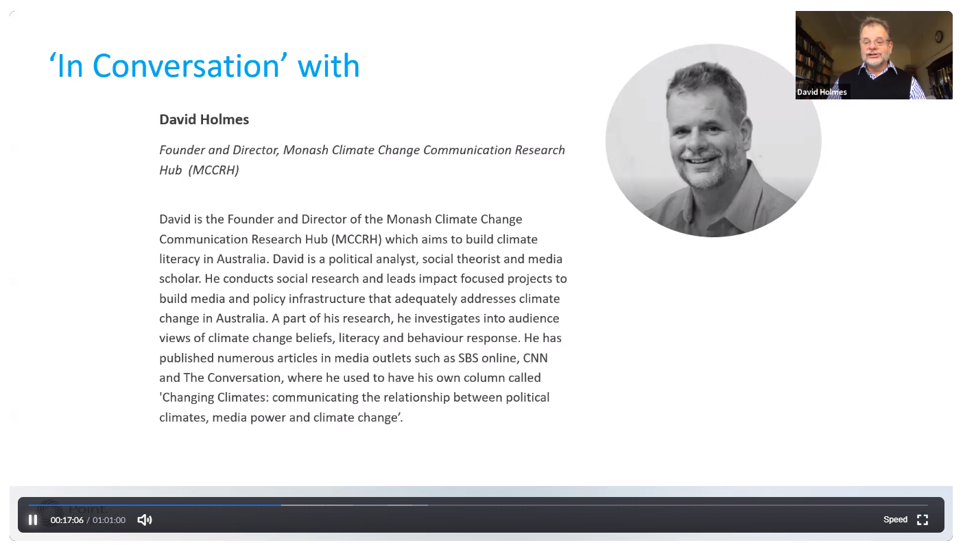 Guest speaker, David Holmes, Director of the Monash Climate Change Communication Research Hub (MCCRH)