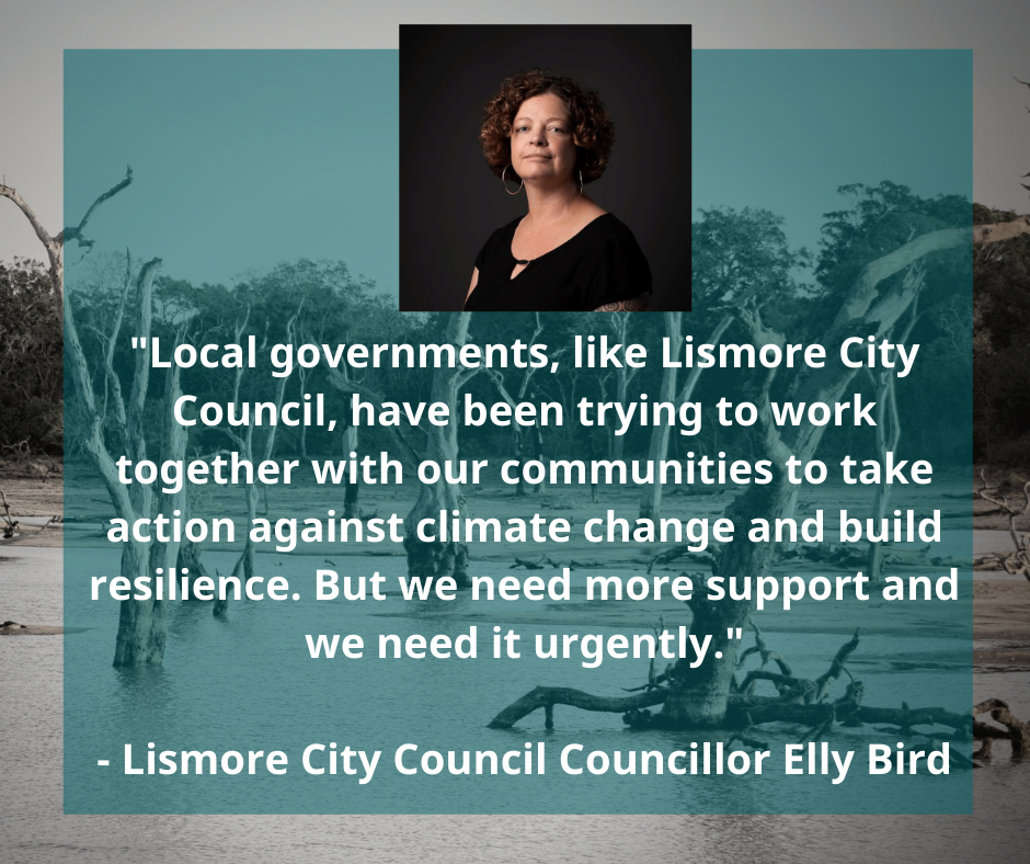 “If we’re to learn a lesson from the catastrophic flooding that we are now seeing happen in Australia every few years, it’s that we are severely underprepared for catastrophic events like this one. We urgently need to address the root cause of the heightened storm threat – climate change,” said Lismore City Council Councillor Elly Bird. “Local governments, like Lismore City Council, have been trying to work together with our communities to take action against climate change and build resilience. But we need more support and we need it urgently.”