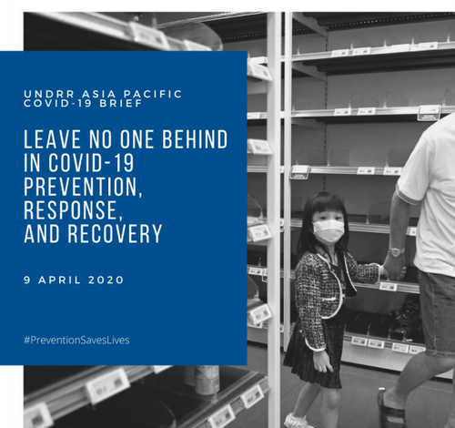 This brief, developed by the UN Office for Disaster Risk Reduction, Regional Office for Asia and the Pacific, highlights the disproportionate impact of COVID-19 on certain groups and offers recommendations to ensure no one is left behind in the COVID-19 response. This brief reflects the interventions and feedback of speakers and participants in the April 4, 2020 webinar on COVID-19: Leave No One Behind, co-organised with Help Age International and UN Women.